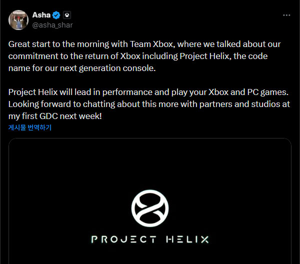 MS °ÔÀÌ¹Ö CEOÀÎ Asha Sharma°¡ Â÷¼¼´ë ¿¢½º¹Ú½º Project Helix°¡ ÄÜ¼Ö °ÔÀÓ ¹× PC °ÔÀÓÀ» ¸ðµÎ Ç÷¹ÀÌÇÒ ¼ö ÀÖ´Â ½Ã½ºÅÛÀÌ µÉ °ÍÀ̶ó°í ¹àÇô ÇâÈÄ Àü·«¿¡ °ü½ÉÀÌ ½ò¸°´Ù.