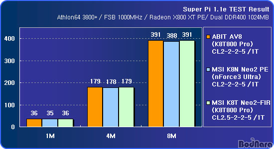 ½Ã°£À» ÅëÇØ CPU ¿¬»ê ¼º´ÉÀ» ÃøÁ¤ÇÏ´Â Super Pi 1.1eÀÇ °á°ú´Â AV8°ú K8T Neo2°¡ °°Àº °á°ú¸¦ ³ªÅ¸³Â´Âµ¥ ºñÇØ K8N