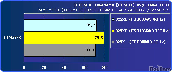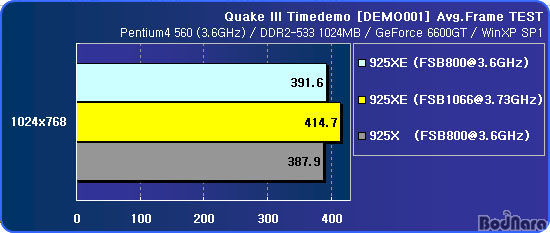 ÇÁ·¹ÀÓ ÃøÁ¤ °á°úµµ Quake III¿Í ¸¶Âù°¡Áö·Î ³ª¿Ô´Ù. ƯÈ÷ FSB1066À¸·Î ¿À¹öÇÑ ÆæÆ¼¾ö4 3.6@3.73GHz + 925XEÀÇ