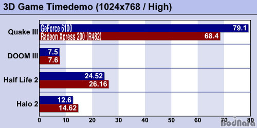 ÀÌ·¯ÇÑ 3D ¼º´É Â÷ÀÌ´Â °ÔÀÓ¿¡¼­µµ ±×´ë·Î À¯ÁöµÇ°í ÀÖ¾î, GeForce 6150ÀÌ Å« Â÷ÀÌ·Î ¾Õ¼¹´ø Quake III¸¦ Á¦¿ÜÇÑ ³ª¸ÓÁö °ÔÀÓ¿¡¼­´Â ¸ðµÎ Radeon Xpress 200ÀÇ ¼º´ÉÀÌ ³ôÀº °ÍÀ¸·Î ÃøÁ¤µÇ¾ú´Ù.