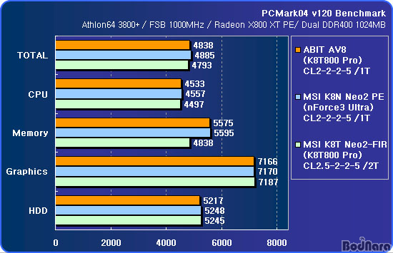 nForce3 Ultra¸¦ »ç¿ëÇÑ K8N Neo2°¡ ÁÁÀº °á°ú¸¦ º¸¿©ÁÖ¾ú´Ù. (¹°·Ð V-Link¶ó ÇÏ¿©µµ ´ë¿ªÆøÀ» ÃʰúÇÒ Á¤µµ·Î ´Ù¸¥