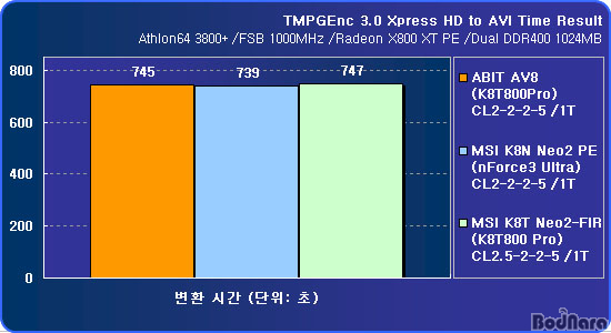 °É¸° ½Ã°£À» ÃøÁ¤ÇÑ °á°ú nForce3 Ultra Ĩ¼ÂÀÇ K8N Neo2°¡ 739ÃÊ(12ºÐ19ÃÊ)¶ó´Â °¡Àå ºü¸¥ °á°ú¸¦ º¸¿´´Ù. ABIT