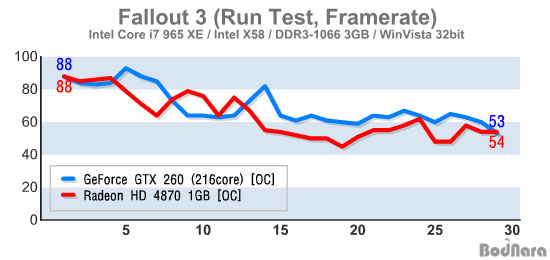 ¿ì¼± ´Þ¸®±â Å×½ºÆ®¿¡¼ÀÇ Æò±Õ ÇÁ·¹ÀÓ º¯È¸¦ º¸¸é ÁöÆ÷½º GTX 260 OC ¸ðµ¨°ú ¶óµ¥¿Â HD 4870 1GB OC ¸ðµ¨ÀÇ ±×·¡ÇÁ º¯È°¡ °ÅÀÇ ºñ½ÁÇÑ ¸ð¾çÀÎ °ÍÀ» º¼ ¼ö ÀÖ´Ù. Áß°£ ºÎºÐ¿¡¼ ¶óµ¥¿Â HD 4870 1GB°¡ Á¶±Ý ³·Àº ¸ð¾çÀÌÁö¸¸ ÀüüÀûÀ¸·Î º¸¸é ´Þ¸®±â Å×½ºÆ®¿¡¼ÀÇ ¼º´É Ç϶ôÀº Ưº°ÇÑ ¹®Á¦Á¡ÀÌ º¸ÀÌÁö ¾Ê´Â´Ù.