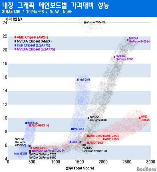 ¿ì¼± 3DMark06 º¥Ä¡¸¶Å©¿¡¼ÀÇ ³»Àå ±×·¡ÇÈ Ä¨¼ÂµéÀÇ °¡°Ý´ëºñ 3D ¼º´ÉÀ» ºñ±³Çغ¸¸é, AMD AM2+ Ç÷§Æû Á¦Ç°µéÀº ÀüüÀûÀ¸·Î ¿ÜÀå ±×·¡ÇÈ Ä«µå ½ÃÀåó·³ °¡°Ý°ú ¼º´É ±×·¡ÇÁ°¡ ÀÌ»óÀûÀÎ ÇüŸ¦ ¶ç°í ÀÖ´Ù. ƯÈ÷ AMD Ĩ¼Â °è¿Àº °ÅÀÇ ´ÜÁ¾µÈ 690G¿Í ÁÖ·ÂÀÌ ¾Æ´Ñ 780VÀÇ °¡°ÝÀ» Á¦¿ÜÇÏ°í °¡°Ý´ëºñ ¼º´É ±×·¡ÇÁ¿¡¼ °¡Àå ÀÌ»óÀûÀÎ ÇüÅÂÀÇ ±×·¡ÇÁ¸¦ º¸¿´´Ù.
