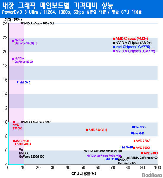 HD µ¿¿µ»ó Àç»ý ¼º´ÉÀº °¡°Ý¿¡ »ó°ü¾øÀÌ GPU¸¦ ÅëÇÑ Çϵå¿þ¾î °¡¼Ó ±â´ÉÀ» °¡Áö°í ÀÖ´À³Ä¿¡ µû¶ó ÁÁ°í ³ª»ÝÀÌ °áÁ¤µÈ´Ù. H.264 1080p Çϵå¿þ¾î °¡¼ÓÀ» Áö¿øÇÏ´Â ³»Àå ±×·¡ÇÈ Ä¨¼ÂÀÇ °æ¿ì H.264 Æ÷¸Ë¿¡ 1080p 60fps·Î ÃÔ¿µÇÑ HD µ¿¿µ»óÀ» Àç»ýÇÏ´õ¶óµµ Æò±Õ CPU »ç¿ë·üÀÌ 10%¸¦ ³ÑÁö ¾Ê´Â´Ù.
