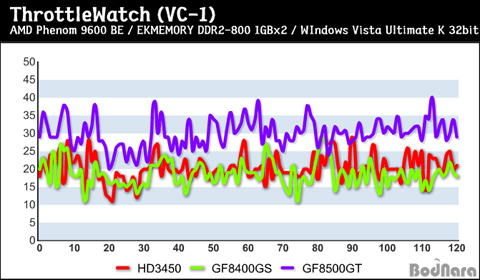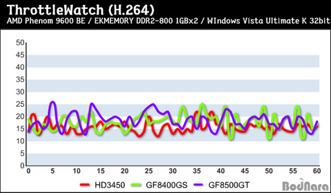 ÀÌ¿¡ ºñÇØ VC-1ÀÇ °æ¿ì ÀϺα¸°£À» CPU°¡ ó¸®ÇÏ´Â 2¼¼´ë PureVideo HD¸¦ žÀçÇÑ GeForce 8500GT´Â »ó´ëÀûÀ¸·Î ³ôÀº 23~40%´ëÀÇ CPU Á¡À¯À²À» º¸¿©ÁÖ°í ÀÖ´Ù.