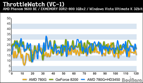 À̹ø¿¡´Â 'DejaVu(µ¥ÀÚºä)' ºí·ç·¹ÀÌ Å¸ÀÌÆ²À» ÀÌ¿ëÇØ VC-1 °¡¼Ó ¿©ºÎ¸¦ »ìÆìº¸µµ·Ï ÇÏÀÚ. °á°ú¿¡¼­ º¼ ¼ö ÀÖµíÀÌ UVD¸¦ Áö¿øÇÏ´Â AMD 780G¿Í 3¼¼´ë PureVideo HD¸¦ °®Ãá GeForce 8200ÀÇ °æ¿ì 30% ÀÌÇÏÀÇ ³·Àº CPU Á¡À¯À²À» º¸¿©ÁÖ°í ÀÖÀ¸¸ç À̹ۿ¡ GeForce 8200°ú µ¿ÀÏÇÑ 3¼¼´ë PureVideo HD¸¦ žÀçÇÑ GeForce 8400GSµµ ºñ½ÁÇÑ CPU Á¡À¯À²À» º¸¿©ÁÖ°í ÀÖ´Ù.