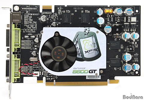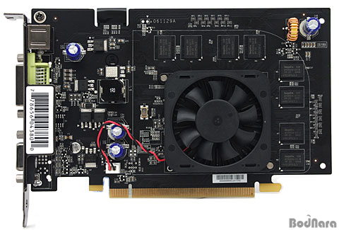 XFX GeForce 8500GT 256MB´Â ºñ·¹ÆÛ·±½º ±âÆÇÀ» »ç¿ëÇϰí ÀÖÀ¸¸ç, SLI Ä¿³ØÅ͸¦ Á¦°øÇϰí ÀÖ´Ù. µÞ¸é¿¡´Â HDCP Áö¿øÀ» À§ÇÑ Å°·ÒÀº Æ÷ÇÔµÇÁö ¾Ê°í ÀÖ´Ù.