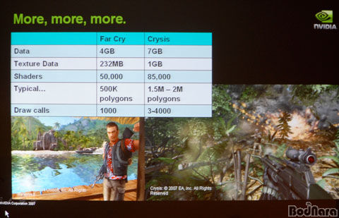 ½ÇÁ¦ Å©¶óÀÌÅØÀÌ ¹àÈ÷´Â Far Cry¿Í Crysis¿¡¼­ 󸮵Ǵ °¢Á¾ ¿¬»ê¿¡ ÇÊ¿äÇÑ µ¥ÀÌÅÍ Ã³¸®·®À» »ìÆìº¸¸é ¸ðµç Ç׸ñ¿¡¼­ 1.5¹è~2¹è¿¡³ª ³ôÀº °ÍÀ» È®ÀÎÇÒ ¼ö ÀÖ´Ù. ÀÌ´Â º¸´Ù »ç½ÇÀûÀÎ ±×·¡ÇÈ Ã³¸®ÀÇ µÞ¹ÞħÀÌ µÇ¾úÀ¸¸ç º¸´Ù ³ôÀº ½Ã½ºÅÛ »ç¾çÀ» ¿ä±¸ÇÏ°Ô µÇ¾ú´Ù.