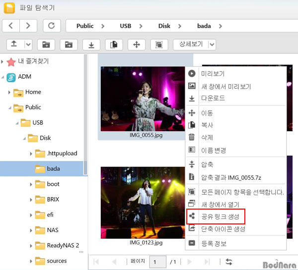 'ÆÄÀÏ Å½»ö±â'¿¡¼´Â À©µµ¿ì Ž»ö±âó·³ NAS ³»ºÎ Æú´õ¿Í ÆÄÀÏÀ» È®ÀÎÇÒ ¼ö ÀÖ´Ù. À½¿ø°ú µ¿¿µ»ó, »çÁø ÆÄÀÏÀº Á¾·ù¿¡ µû¶ó ADMÀ¸·Î