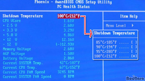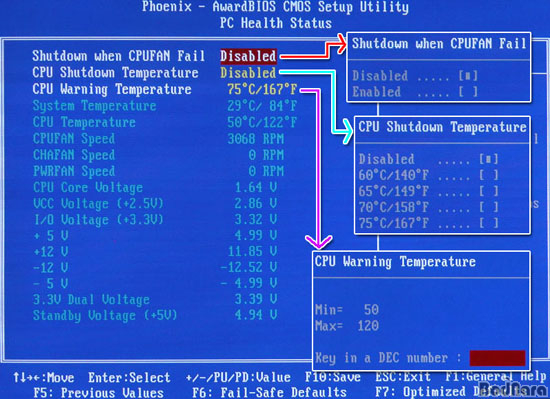 CPUÀÇ ¿Âµµ°¡ ¿Ã¶ó°¥ °æ¿ì °æ°íÇØÁÖ´Â ±â´É, ±×¸®°í ÄÄÇ»Å͸¦ ÁߴܽÃŰ´Â ±â´ÉÀÇ 3°¡Áö¸¦ ¼³Á¤ÇÒ ¼ö ÀÖ´Ù.