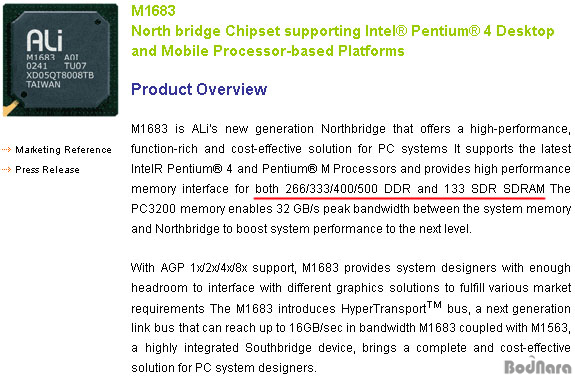 ALiÀÇ È¨ÆäÀÌÁö¿¡¼´Â ã¾Æº¼ ¼ö ¾ø´Â À̸§ÀÌ´Ù. ±× ´ë½Å ÀÎÅÚÀÇ FSB 800 ÆæÆ¼¾ö4 CPU¸¦ Áö¿øÇÏ´Â M1683°ú AL800¿¡