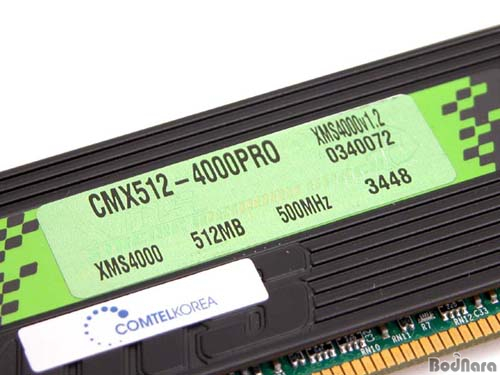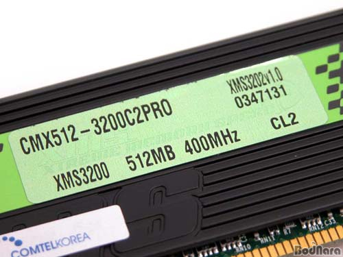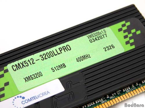 PRO´Â 512MBÀÇ PC3200 DDR SDRAM ¸ðµâ·Î DDR 400Mhz¸¦ Áö¿øÇϸç, 2-3-2-6ÀÇ Latency TimeÀ» °®°í