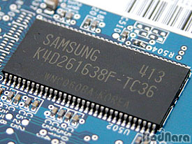 TSOP ŸÀÔÀÇ DDR SDRAMÀ» ÀåÂøÇϰí ÀÖÀ¸¸ç °°Àº »ï¼º 3.6ns Á¦Ç°À» »ç¿ëÇÏ¿´´Ù. GeForce PCX 5750Àº 128bit