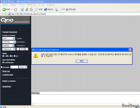¿À·ù°¡ ¶ß´Âµ¥ ÀÌ´Â IP CAM¿¡ Á¢¼Ó / ÀÛµ¿Çϱâ À§ÇØ ÇÊ¿äÇÑ ActiveX ÄÁÆ®·Ñ ÇÁ·Î±×·¥ÀÌ ÀÎÅÍ³Ý ÀͽºÇ÷η¯ÀÇ º¸¾È ¼³Á¤¿¡ °É¸®±â