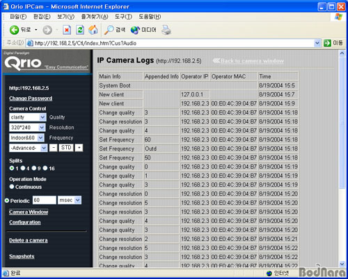 View Log ¸Þ´º¿¡¼´Â IP CAM¿¡ Á¢¼ÓÇÏ¿© ÇÑ ¸ðµç