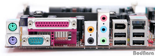 ABIT NF8ÀÇ ¹éÆÐ³Î ºÎºÐÀÌ´Ù. ¹¹ Áö±Ý±îÁöÀÇ ´Ù¸¥ Á¦Ç°µé°ú º°¹Ý Â÷À̰¡ ¾ø´Âµ¥ ¹éÆÐ³Î »ó¿¡¼ Á÷Á¢ ¾Æ³¯·Î±× 5.1ä³ÎÀÇ Ãâ·ÂÀ» Áö¿øÇϱâ À§ÇØ »ç¿îµå Ãâ·Â Æ÷Æ®°¡ 5°³ ÀåÂøµÇ¾î ÀÖ´Ù. ÇÏÁö¸¸ µðÁöÅйæ½ÄÀÇ Ãâ·ÂÀ» À§ÇÑ S/PDIF Ãâ·Â Æ÷Æ®´Â ÀåÂøµÇ¾î ÀÖÁö ¾Ê´Ù. ¿ÜºÎ µðÄÚ´õ¸¦ »ç¿ëÇÏ´Â À¯Àú¶ó¸é º°µµÀÇ µðÁöÅÐ Ãâ·ÂÀÌ °¡´ÉÇÑ º°µµÀÇ »ç¿îµå Ä«µå°¡ ÇÊ¿äÇÏ´Ù.