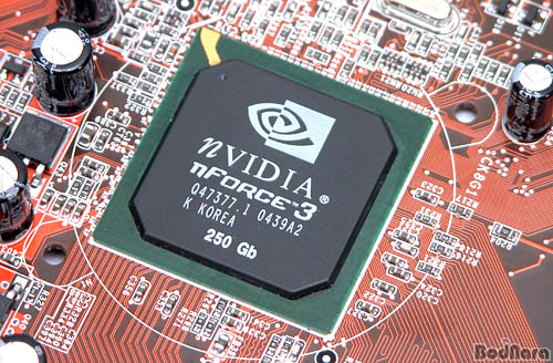 NF8¿¡ ÀåÂøµÈ Ĩ¼ÂÀÇ »çÁøÀÌ´Ù.. ÀÌ¹Ì ¼³¸íÇÏ¿´µíÀÌ nForce3 250Gb Ĩ¼ÂÀÌ ÀåÂøµÇ¾î Àִµ¥ ½ÃÀå¿¡´Â 250 Á¦Ç°°ú 250Gb Á¦Ç°ÀÌ ÆÇ¸ÅµÇ°í ÀÖ°í À̵é Ĩ¼ÂÀº Gigabit Ethernet MacÀ» Æ÷ÇÔÇϰí ÀÖ´À³Ä ÀÖÁö ¾Ê´À³Ä¿¡ µû¶ó¼ ´Þ¶óÁø´Ù. ¹°·Ð nForce3 250Gb Ĩ¼ÂÀº Gigabit Ethernet MacÀ» Æ÷ÇÔÇϰí ÀÖÀ¸¸ç ÀÌ·ÎÀÎÇØ Gigabit Network ȯ°æÀÇ ±¸Ãà½Ã ´Ù¸¥ PCI¹æ½ÄÀÇ Gigabit ÄÁÆ®·Ñ·¯¸¦ »ç¿ëÇÏ´Â °Íº¸´Ù ³ôÀº µ¥ÀÌÅÍ Àü¼Û·üÀ» ³ªÅ¸³¾ ¼ö°¡ ÀÖ´Ù.