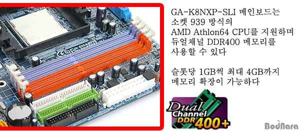 GA-K8NXP-SLIÀÇ µà¾óä³Î ¸Þ¸ð¸® ±¸¼ºÀº °°Àº »ö»óÀÇ ¸Þ¸ð¸® ½½·Ô¿¡ 2°³¾¿ ²ÅÀ¸¸é µÈ´Ù