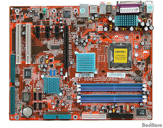 ABIT GD8ÀÇ ·¹À̾ƿôÀ» »ìÆìº¸¸é ABIT ¸ÞÀκ¸µåµé¿¡°Ô °¨ÃÊó·³ µé¾î°¡´Â Guru ÇÁ·Î¼¼¼­°¡ º¸ÀÌÁö ¾Ê´Â´Ù. ¶ÇÇÑ Ä¨¼Â Äð·¯ ºÎºÐÀÌ ¸ðµÎ ÆÒÀÌ ¾ø´Â È÷Æ®½ÌÅ©·Î µÇ¾îÀÖ´Ù. GD8ÀÇ PCB¿¡´Â IEEE1394³ª SATA RAID ÄÁÆ®·Ñ·¯, Guru ÇÁ·Î¼¼¼­¸¦ ´Þ ¼ö ÀÖ´Â À§Ä¡°¡ ÀüÇô ¾ø¾î ¸¦ À§ÇÑ ¹è°¡ ¾ø´Â °Í°ú, (µÚ¿¡¼­ »ìÆìº¸°ÚÁö¸¸) ÆÐŰÁö ±¸¼º¹°ÀÌ ±âº»ÀûÀÎ °Í¸¸ ÀÖ´Â °ÍÀ¸·Î ¹Ì·ç¾î º¸±ÞÇü ¸ÞÀκ¸µå¶ó´Â »ý°¢À» °®°Ô ÇÑ´Ù.