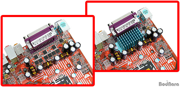 ±×·¯³ª È÷Æ®½ÌÅ©¸¦ »ç¿ëÇÑ Àü¿øºÎ Äð¸µÀ̶ó´øÁö Àü¿øºÎ ±ÙóÀÇ PCB¿¡ º¸ÀÌ´Â OC(OverClocking) Strip, ±â°¡ºñÆ® ·£ ÄÁÆ®·Ñ·¯, iTE IT8211F IDE ÄÁÆ®·Ñ·¯ Ãß°¡´Â GD8À» ´Ü¼øÈ÷ "°¡°ÝÀ» ³·Ãá Àú°¡Çü º¸µå"·Î º¸±â ¾î·Æ°Ô Çϰí ÀÖ´Ù.