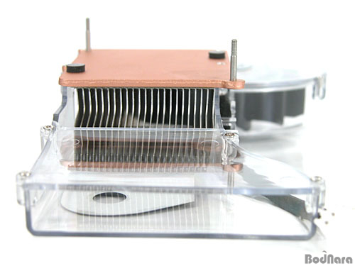 ±×·¡ÇÈ Ä«µåÀÇ ÇÙ½ÉÀ̶ó°í ÇÒ ¼ö ÀÖ´Â GPU ºÎºÐ°ú Á¢ÃËÇÏ´Â ºÎºÐÀº ÀûÀýÇÑ µÎ²²ÀÇ ±¸¸®ÆÇÇüÀ¸·Î ±¸¼ºµÈ´Ù. GPU ÁÖÀ§¿¡ ÀÖ´Â ÀÛÀº ºÎǰ°ú ÀÌ ºÎºÐÀÌ Á÷Á¢ÀûÀ¸·Î Á¢ÃËÇÏÁö ¾Ê°í GPU¸¸ Á¢ÃËÇϵµ·Ï °í¹« ÆÐµå¸¦ ÀÌ¿ëÇÏ¿© °ø°£À» ¸¸µé¾î ÁÖ°í ÀÖ´Ù. ±¸¸® º£À̽ººÎÀÇ ·¡ÇÎ »óÅ´ °Å¿ï°ú °°Àº »óÅ´ ¾Æ´Ï¾ú°í ¹°°ÇÀ» ºñÃ߾ º¸ÀÌÁö ¾Ê´Â Á¤µµÀÌ´Ù. ±¸¸® º£À̽ººÎ¿Í »ó´ÜÀÇ ¿©·¯°³ÀÇ ÆÇÇü ±¸Á¶·Î GPU¿¡ ¹ß»ýµÇ´Â ¹ß¿ÀÌ ÀüµµµÇ¾î °ø±â¿Í Á¢ÃËÇÏ°Ô µÇ°í ¾ÕÂÊÀÇ ÆÒÀ» µ¹·Á °ø±â¸¦ ÈĸéÀ¸·Î ¹èÃâÇÏ¿© Äð¸µÀ» ÇÏ´Â ¹æ½ÄÀÌ´Ù.