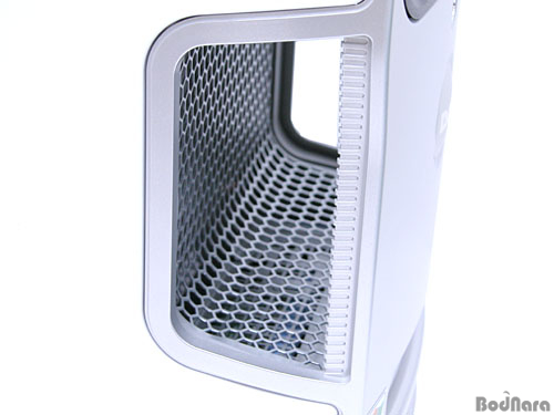 Ãø¸é »þ½Ã ºÎºÐ¿¡µµ ÅëdzÀ» À§ÇÑ ºÎºÐÀÌ »ó´çÈ÷ Å©°Ô À§Ä¡Çϰí ÀÖ´Ù. ±âÁ¸ ´ëºÎºÐÀÇ ÄÉÀ̽ºµéÀÌ Àü¸éÀÇ Åëdz±¸¸¦ ÅëÇÏ¿© °ø±â¸¦ ÈíÀÔÇϰí ÈÄ¸é ÆÒÀ¸·Î °ø±â¸¦ ¹èÃâÇÏ´Â ÇüÅÂÀε¥ Dimension 5100ÀÇ °æ¿ì CPU¿¡ »ç¿ëµÈ 120mm ÆÒ°ú ÆÄ¿ö ¼­ÇöóÀÌ ÆÒÀÌ À¯ÀÏÇϰí ÀÌ µÎ°¡Áö ÆÒÀº Àü¸éÀ¸·ÎºÎÅÍ °ø±â¸¦ ÈíÀÔÇÏ´Â ÇüÅ·Π»ç¿ëµÈ´Ù. À̶§, HDD ÀåÄ¡µé¿¡¼­ ¹ß»ýµÇ´Â ¹ß¿­µµ ¾î´À Á¤µµ ½ÄÇôÁÙ ¼ö ÀÖµµ·Ï Áß°£¿¡ À§¿Í °°Àº Åëdz±¸¸¦ ¹èÄ¡Çϰí ÀÖ´Ù. ÀÌ ºÎºÐ ¿ª½Ã Àå½Ã°£ »ç¿ë½Ã ¸ÕÁö À¯ÀÔÀÌ »ó´çÇÒ °ÍÀ¸·Î º¸¿© ¸ÕÁö ÇÊÅ͸¦ Ãß°¡ÇؾßÇÒ ºÎºÐÀÌ´Ù.