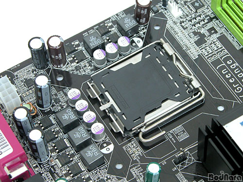 MCHÀÎ i945P Express Ĩ¼Â°ú ICHÀÎ ICH7R (945P Neo-F´Â ICH7)ÀÌ »ç¿ëµÇ´Âµ¥ ºñ·Ï ±×·¡ÇÈ Äھ ³»ÀåÇϰí ÀÖÁö´Â ¾ÊÁö¸¸, MCH°¡ Áö¿øÇÏ´Â ±â´ÉÀÌ ´Ã¾î³­ ¸¸Å­ ¹ß¿­·®µµ Áõ°¡Çϱ⠶§¹®¿¡ ³ôÀ̰¡ ³ô°í ¹æ¿­¸éÀûÀÌ ºñ±³Àû ³ÐÀº ¹æ¿­ÆÇÀÌ »ç¿ëµÇ°í ÀÖ´Ù. ICHµµ Matrix RAID¶óµçÁö Intel High Definition Audio µîÀÇ Ãß°¡µÈ ±â´Éµé·Î ÀÎÇÏ¿© ´Ã¾î³­ ¹ß¿­À» ÇØ¼ÒÇϱâ À§ÇØ Àû´çÇÑ Å©±âÀÇ ¹æ¿­ÆÇÀ» Çϳª Ãß°¡Çϰí ÀÖ´Ù. ³ë½ººê¸´ÁöÀÎ i945P Express MCH´Â FSB 533/800/1066MHz¸¦ Áö¿øÇϸç, DDR2 400/533/667MHz¸¦ Áö¿øÇÑ´Ù.