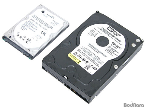 3.5ÀÎÄ¡ HDD¿Í Seagate Momentus 7200.1 100GB¸¦ ºñ±³ÇÏ¿© º¸¾Ò´Ù. ¼·ÎÀÇ Å©±â´Â »ó´çÇÑ Â÷À̸¦