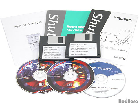 32/ 64bit µå¶óÀ̹ö CD °¢ 1Àå, Shuttle Exras CD 1Àå, Àü¿ø ÄÉÀ̺í 1°³, 4ÇÉ 12V ¹× FDD