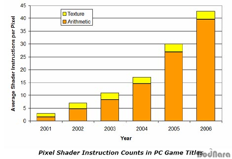 [ATI°¡ ¼³¸íÇÑ Pixel Shader¸¦ »ç¿ëÇÑ °ÔÀÓŸÀÌÆ²ÀÇ ºñÀ², 2006³â¿¡´Â °ÅÀÇ ¸ðµç °ÔÀÓŸÀÌÆ²ÀÌ Pixel Shader¸¦ »ç¿ëÇÏ°Ô µÉ°ÍÀ¸·Î ¿¹»óµÇ°í ÀÖ´Ù.]