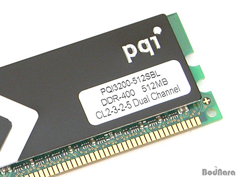 PQI3200-512SBLÀº DDR-400 512MB Á¦Ç°À¸·Î ¸Þ¸ð¸®´Â ´Ü¸éÀ¸·Î Àü¸é¿¡ ¸ðµÎ 8°³ÀÇ ¸Þ¸ð¸®°¡ ¹èÄ¡µÇ¾î