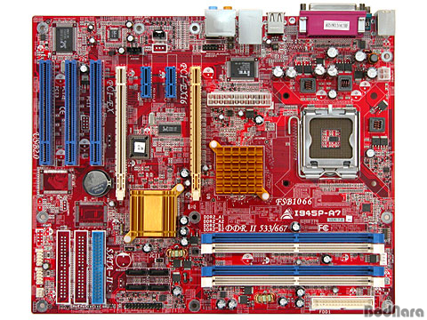 i945P MCH¿Í ICH7À» »ç¿ëÇÏ¿´´Ù. i945P¿¡¼´Â FSB1066MHz, DDR2 SDRAMÀÇ Áö¿ø°ú PCI-Express x16À»