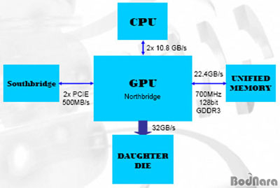 ÀÌ·¯ÇÑ XBOX 360ÀÇ ³»ºÎ ±¸Á¶´Â ATI°¡ ÇÁ¸®Á¨Å×ÀÌ¼Ç ÀڷḦ ÅëÇØ °ø°³ÇÑ XBOX 360¿ë GPU ´ÙÀ̾î±×·¥¿¡¼­µµ È®ÀÎÇÒ ¼ö Àִµ¥, GPU¿¡ ³ë½ººê¸´Áö ±â´ÉÀÌ µé¾î°¡°í CPU´Â GPU¸¦ ÅëÇØ¼­ »ç¿ì½º ºê¸´Áö¿Í ¿¬°áÇÏ°Ô µÈ´Ù. PC·Î Ä¡¸é ³ë½º ºê¸´Áö¿¡ ³»Àå ±×·¡ÇÈ Äھ µé¾î°¬´Ù°í »ý°¢ÇÏ¸é µÈ´Ù. (¹°·Ð PC¿Í ´Ù¸£°Ô XBOX 360Àº GPU°¡ ³ë½ººê¸´Áö¸¦ Æ÷ÇÔÇÏ´Â ±¸Á¶´Ù)