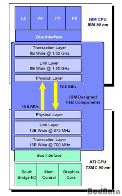 XBOX 360ÀÇ CPU¿Í GPU´Â 21.6GB/sÀÇ ´ë¿ªÆøÀ¸·Î ¿¬°áµÈ´Ù.