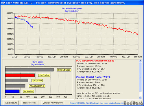 Á¦°øÇÏ´Â WD2500JD, 74GBÀÌÁö¸¸ 10,000RPMÀÇ ºü¸¥ µ¿ÀÛÀ¸·Î ³ôÀº ¼º´ÉÀ» º¸ÀÌ´Â Raptor WD740GDÀÇ