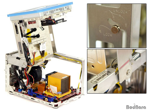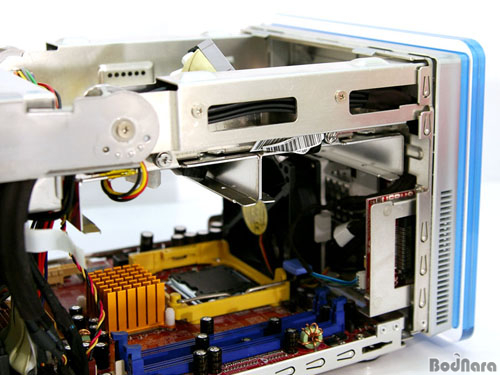 pico-BTX ŸÀÔÀÇ ¸ÞÀκ¸µå°¡ µé¾î°£ iDEQ 350G´Â Ä¿¹ö ºÐ¸® ¿Ü¿¡µµ µ¶Æ¯ÇÑ ¹æ½ÄÀÇ ½Ã½ºÅÛ Á¶¸³ÀÌ °¡´ÉÇѵ¥, ¹Ù·Î È®Àå º£ÀÌ ºÎºÐÀÌ Æ÷ÇÔµÈ Àü¸é ÇÁ·¹ÀÓÀÌ À§ÂÊÀ¸·Î ¿Ã¶ó°¡´Â °ÍÀÌ´Ù. À̸¦ ÅëÇØ CPU ¹× ¸Þ¸ð¸®, È®Àå Ä«µå ¼³Ä¡°¡ °£ÆíÇÏ°Ô ÀÌ·ïÁö¸ç, °¢Á¾ ¿¬°á ÄÉÀ̺íÀº ÀÌ¹Ì ¿¬°áµÈ »óÅÂ·Î ÇØ´ç ±â±â°¡ ÀåÄ¡µÉ À§Ä¡¿¡ ÁغñµÇ¾î ÀÖ´Ù.