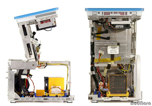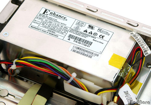 iDEQ 350G¿¡´Â 330Gº¸´Ù ¿ë·®ÀÌ ¿Ã¶ó°£ 300W Enhance ¹Ì´Ï ÆÄ¿ö°¡ ´Þ·ÁÀÖ´Ù. °¡·Î ŸÀÔÀ¸·Î ÀåÂøµÇ±â ¶§¹®¿¡ º£¾îº» ³»ºÎ °ø°£À» ¸¹ÀÌ Â÷ÁöÇÏÁö ¾Ê´Â´Ù. ÆÄ¿ö ¿·¿¡´Â ¹Ù´ÚºÎÅÍ ¿¬°áµÈ ¹«¼± ·£ Ä«µå¿ë ¾ÈÅ׳ª ÄÉÀ̺íÀÌ Å×ÀÌÇÁ·Î °íÁ¤µÇ¾î ÀÖ´Ù. À̰ÍÀº Mini PCI ½½·Ô¿¡ 802.11g ¹«¼± ·£ Ä«µå¸¦ ²ÅÀº ÈÄ ¿ÜºÎ·Î ¾ÈÅ׳ª¸¦ ¿¬°áÇϱâ À§ÇØ »ç¿ëµÈ´Ù.