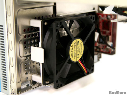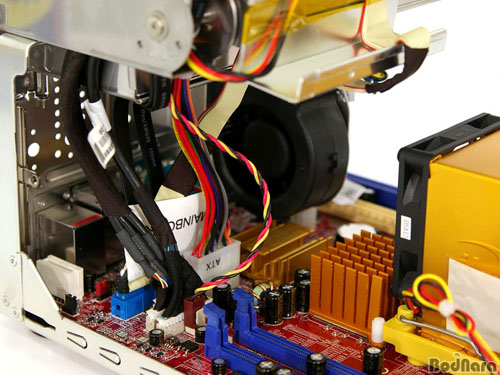 pico BTX µðÀÚÀÎÀÇ Ä𸵠½Ã½ºÅÛ ¼³°è´Â Àü¸é¿¡¼ºÎÅÍ ÈíÀÔµÈ ¿ÜºÎ °ø±â°¡ CPU¿Í ¸ÞÀκ¸µå Ĩ¼ÂÀÌ ÀÖ´Â Áß¾ÓÀ» ÀÏÁ÷¼±À¸·Î Áö³ª µÞ¸éÀ» ÅëÇØ ¹ÛÀ¸·Î ºüÁ®³ª°¡µµ·Ï ¸¸µé¾îÁ³´Ù. À̸¦ À§ÇØ iDEQ 350GÀÇ Àü¸é¿¡´Â ¿ÜºÎ °ø±â¸¦ »¡¾ÆµéÀÌ´Â ÆÒÀÌ ´Þ·ÁÀÖ´Ù.
