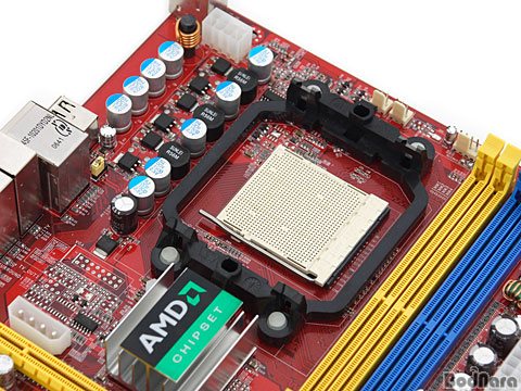 »ç¿ëµÇ´Â Ĩ¼ÂÀº ¾Õ¼­ ¼Ò°³ÇÏ¿´µíÀÌ AMD 480X CrossFire¿Í SB600ÀÇ ±¸¼ºÀÌ´Ù. AMD 480X CrossFire´Â ÄÚµå¸í RD480À̾ú´Âµ¥ Ãʱ⿡´Â ATI Radeon Xpress 200¿¡¼­ ATI Radeon Xpress 1600À¸·Î ´Ù½Ã AMD 480X CrossFire·Î ÃÖÁ¾ º¯°æµÇ¾ú´Ù. Áö¿øÇϰí ÀÖ´Â CPU´Â AMD AM2 ¼ÒÄÏÀ» Áö¿øÇÏ´Â Sempron, Athlon64, Athlon64 X2, Athlon64 FX¸¦ Áö¿øÇÑ´Ù. AMDÀÇ °æ¿ì CPU¿¡ ¸Þ¸ð¸® ÄÁÆ®·Ñ·¯°¡ ³»ÀåµÇ¹Ç·Î AMD 480X CrossFire´Â CrossFire PCI-Express x8 + x8 lane ±¸¼ºÀ» À§ÇÑ PCI-E LaneÀ» °ü¸®ÇÏ°Ô µÈ´Ù. ¶ÇÇÑ, °æÀï»çÀÇ nForce4 ½Ã¸®ÁîÀÇ 0.15nm °øÁ¤ÀÇ Ä¨¼Âµéº¸´Ù Çâ»óµÈ 0.13nm °øÁ¤À» »ç¿ëÇϰí ÀÖ¾î ¼ÒºñÀü·ÂÀ̳ª ¹ß¿­ ºÎºÐ¿¡¼­µµ À¯¸®ÇÏ´Ù.