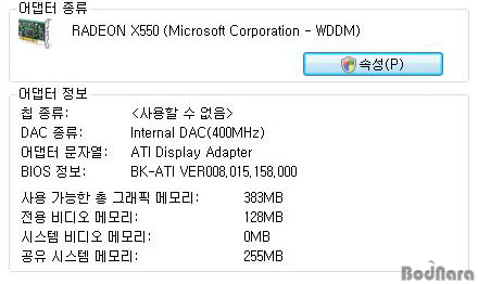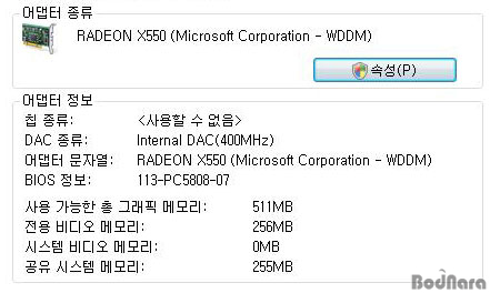 Windows Vista ±âº» µå¶óÀ̹ö (WDDM)¿¡¼´Â Radeon X550À¸·Î ÀνÄ