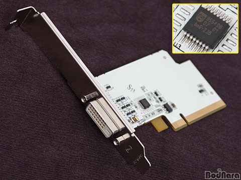 DVI Ãâ·ÂÀÇ °æ¿ì ÀÏ¹Ý ±×·¡ÇÈ Ä«µåµé¿¡¼­ Á¦°øµÇ´Â D-SUB to DVI º¯È¯ÀèÀÇ DVI-I Áö¿ø°ú´Â ´Þ¸® DVI-D¸¦ Áö¿øÇÏ¿© º¯È¯ÀèÀ» »ç¿ëÇÒ ¼ö ¾ø°í LCD ¸ð´ÏÅÍÀÇ DVI-D ÄÉÀ̺íÀ» »ç¿ëÇØ¾ß ÇÑ´Ù. DVI Ãâ·ÂÀ» À§ÇØ ±âÁ¸ÀÇ Micro-ATX ŸÀÔ ¸ÞÀκ¸µåµéÀÌ ±×·¡¿ÔµíÀÌ PCI-Express x16 ½½·Ô¿¡ ÀåÂøÇÏ¿© »ç¿ëÇÒ ¼ö ÀÖ´Â Riser Ä«µå¸¦ Á¦°øÇÏ´Â ¹æ½ÄÀ¸·Î Áö¿øÇϰí ÀÖ´Ù. PCI-Express x16 ½½·ÔÀ» °ÅÃÄ DVI ½ÅÈ£¸¦ ¹Þ´Â ¹æ½ÄÀ¸·Î PhilipsÀÇ PCA9554 Ĩ¼ÂÀº DVI ÀÔÃâ·ÂÀ» ´ã´çÇÏ°Ô µÈ´Ù.