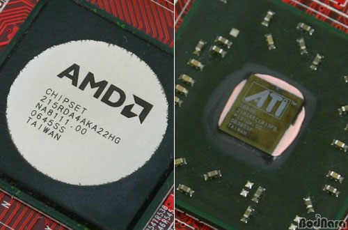 ³ë½ººê¸´Áö Ĩ¼ÂÀ¸·Î´Â AMD 480X Ĩ¼ÂÀ» »ç¿ëÇÏ¿´À¸¸ç »ç¿ì½ººê¸´Áö¿¡´Â SB600À» ´Þ¾Ò´Ù. AMD 480X´Â ATI¸¦ ÀμöÇÑ ÈÄ ATI Radeon Xpress 1600 ¸ÞÀκ¸µå Ĩ¼ÂÀ» AMDÀÇ À̸§À¸·Î ¹Ù²ã³õÀº °ÍÀÌ´Ù. »ç¿ì½ººê¸´Áö SB600µµ AMD SB600À¸·Î ¹Ù²î¾úÀ¸³ª Ĩ¼Â¿¡´Â ¾ÆÁ÷ ATI ·Î°í°¡ º¸ÀδÙ. 480X´Â 8X + 8X CrossFire¸¦ Áö¿øÇÏ´Â °ÍÀÌ Æ¯Â¡À̸ç SB600Àº SATA II Æ÷Æ® 4°³¿Í SATA RAID 0, 1, 5, 10 ±¸¼ºÀ» ÇÒ ¼ö ÀÖ´Ù.