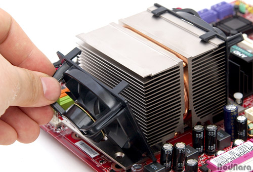 Äð·¯ÀÇ 3ÇÉ ÄÉÀ̺íÀ» ¸ÞÀκ¸µåÀÇ CPU ÆÒ Ä¿³ØÅÍ¿¡ ¿¬°áÇϸé ÀåÂøÀÌ ¿Ï·áµÈ´Ù. °³ÀÎÀûÀÎ »ý°¢À¸·Î´Â ÆÒÀÌ ¸Þ¸ð¸® ½½·Ô°ú ¹éÆÐ³ÎÀ» ÇâÇÏ´Â°Ô °¡Àå Ä𸵠ȿÀ²ÀÌ ÁÁÀ» °ÍÀ¸·Î ¿©°ÜÁö´Âµ¥, ±×·¸°Ô µÇ¸é Àü¿øºÎ³ª ¸Þ¸ð¸® ½½·Ô¿¡ °£¼· Çö»óÀÌ »ý±æ ¼ö ÀÖ¾î ȣȯ¼ºÀ» ³ôÀ̱â À§Çؼ­ °¡À̵åÀÇ ¸ð¾çÀ» µû¶ó ¼¼·Î·Î ÀåÂøµÇ°Ô ¸¸µé¾ú´Ù.
