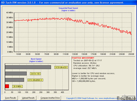 ¸ðµÎ Á¤»óÀûÀ¸·Î ¿ë·®À» ÀνÄÇß´Ù. °£´ÜÈ÷ HD Tach·Î 32MB º¥Ä¡¸¶Å©¸¦ ¼±ÅÃÇÏ¿© Àб⸸ ÁøÇàÇÑ °á°ú ¾×¼¼½º³ª CPU