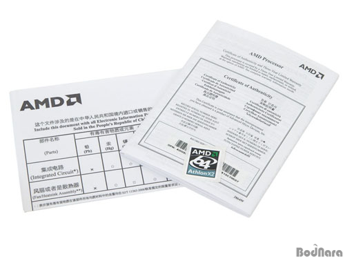 AMD Athlon64 X2 3600+ ºê¸®Áî¹ø ÆÐŰÁö¿¡´Â CPU¿Í Á¤Ç° Äð·¯, ǰÁú º¸Áõ¼­°¡ µé¾î°£ ¼³¸í¼­ ¹× ½ºÆ¼Ä¿ µîÀÌ Á¦°øµÈ´Ù.