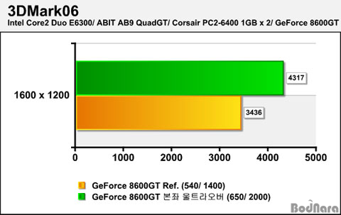 3DMark06À» ÅëÇØ ·¹ÆÛ·±½º Ŭ·°À» °¡Áø GeForce 8600GT¿ÍÀÇ ¼º´ÉÀ» È®ÀÎÇØº¸¾Ò´Âµ¥ 8600GTS¿¡ °¡±õ°Ô