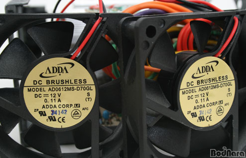 Á¦Ç° ¾Õ µÚ·Î »ç¿ëµÈ ÆÒÀº ¸ðµÎ ADDA 60mm ÆÒÀ¸·Î 12V 0.11A ½ºÆÑÀ» °¡Áö°í ÀÖ´Â DC ÆÒÀÌ´Ù. ¾Õ¼­ »ìÆìº» ȸ·Î¿¡ ¿¬°áµÇ¾î Àֱ⠶§¹®¿¡ ¿Âµµ¿¡ µû¶ó ȸÀü ¼Óµµ¸¦ ÀúÀý·Î ¹Ù²Ù±â ¶§¹®¿¡ ¼ÒÀ½°ú Äð¸µÀÇ °ü°è¸¦ ¾Ë¾Æ¼­ Á¶ÀýÇØ ÁØ´Ù.