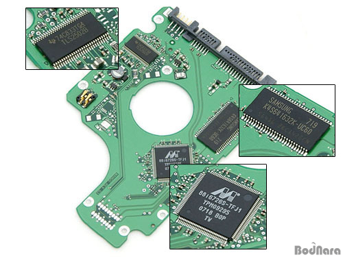 PCB¿¡´Â ÇÏµå µð½ºÅ©¸¦ µ¿ÀÛ½Ã۱â À§ÇÑ ÀÎÅÍÆäÀ̽º ÄÁÆ®·Ñ·¯¿Í ½ºÇÉµé ¸ðÅÍ ÄÁÆ®·Ñ·¯, ±×¸®°í ¹öÆÛ ¸Þ¸ð¸®°¡ ´Þ·ÁÀÖ´Ù. ¹öÆÛ ¸Þ¸ð¸®´Â »ï¼º 8MB SDRAMÀÌ »ç¿ëµÇ¾ú´Ù.