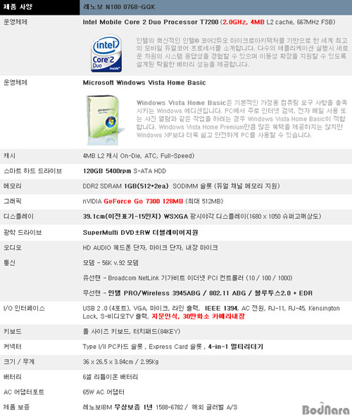 ÀÌ Á¦Ç°Àº ½ºÆåÀÌ °¡Àå °­Á¡ÀÌ´Ù. Core2 Duo T7200Àº »êŸ·Î»ç CPU¿Í ºñ±³ÇØ Å©°Ô ¶³¾îÁöÁö ¾Ê´Â Merom °è¿­ ÃÖ»óÀ§±ÞÀ̰í, º°µµ ¾÷±×·¹À̵åÇÑ 2GBÀÇ ¸Þ¸ð¸®, 1680X1050ÀÇ ³ÐÀº WIDEÈ­¸é, GeForce Go 7300 GPU´Â ÀÌ Á¦Ç°ÀÇ ÃÖ´ë °­Á¡ Áß¿¡ Çϳª´Ù. ÇöÀç ÀÌ Á¦Ç°ÀÇ °¡°ÝÀÌ 110¸¸¿ø´ë¿¡ Æ÷ÁøÇØÀִµ¥ ÀÌ °¡°Ý´ë¿¡ ÀÌ ½ºÆåÀ» ã¾Æº¼ ¼ø ¾ø´Ù. ´ÜÁö ÇÊÀÚ°¡ °ÔÀÓÀ» ÇÏÁö ¾Ê±â ¶§¹®¿¡ 7300 Go°¡ º°·Î ¾µµ¥¾ø´Ù´Â °ÍÀÌ ¾Æ½±´Ù¸é ¾Æ½¬¿î ºÎºÐ.